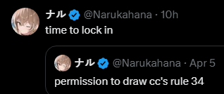 >>110873588I still haven't. Literally just this girl excited about Gigi and Justice. I haven't pried about socials but when I've talked streams she's shown me Gigi clips or timestamps which I can't imagine someone that dedicated (small hurdle to the hobby) wouldn't be on Twitter/Discord too doing the oomfies stick together thing.>>110873615Bruh it was a meme at first but i never tried this before I don't know how close I actually am but it hasn't failed yet