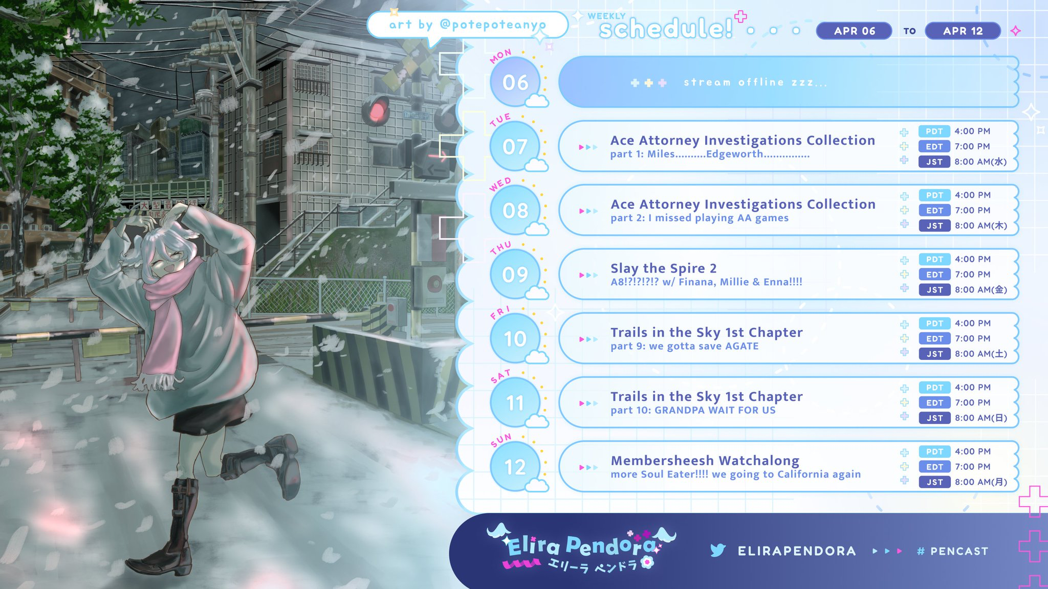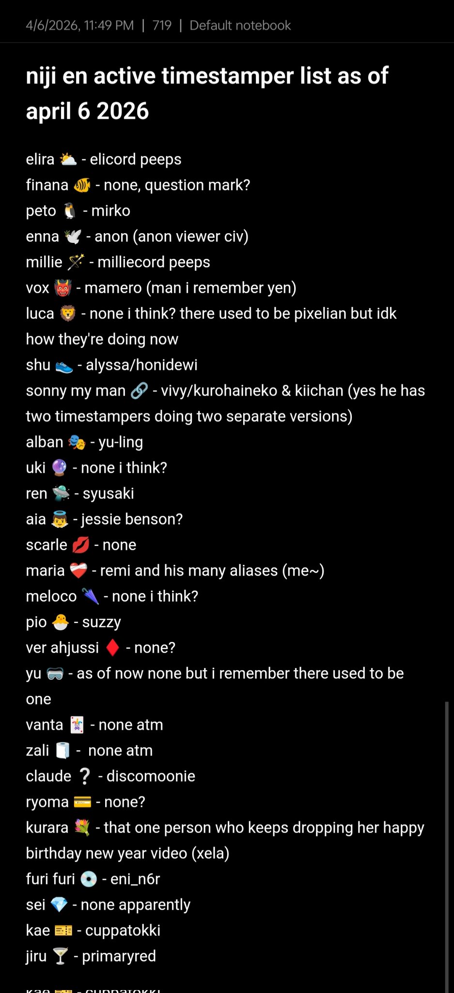 Nijisanji EN YouTube channels:https://www.youtube.com/@nijisanji_en/channelsX:https://x.com/NIJISANJI_Worldhttps://x.com/i/lists/1415262975435231235LazuLight:https://x.com/EliraPendorahttps://x.com/FinanaRyuguOBSYDIA:https://x.com/Petra_GurinEthyria:https://x.com/MillieParfaithttps://x.com/EnnaAlouetteLuxiem:https://x.com/Luca_Kaneshirohttps://x.com/Shu_Yaminohttps://x.com/Vox_AkumaNoctyx:https://x.com/Sonny_Briskohttps://x.com/Uki_Violetahttps://x.com/Alban_KnoxILUNA:https://x.com/MariaMari0nettehttps://x.com/AiaAmarehttps://x.com/ScarleYonagunihttps://x.com/RenZott0XSOLEIL:https://x.com/D_Dropscythehttps://x.com/MelocoKyoranhttps://x.com/Ver_VermillionKrisis:https://x.com/VezaliusBandagehttps://x.com/Tyrant_Vantahttps://x.com/YuQWilsonTTT:https://x.com/ClaudeClawmarkDenauth:https://x.com/RyomaBarrenworthttps://x.com/KlaraCharmwoodBY THE BEAT:https://x.com/by_the_beathttps://x.com/Seible_2434https://x.com/KaelixDebonairhttps://x.com/Freo_2434https://x.com/ZealGinjokaTeamup schedule for Nijisanji EN:https://teamup.com/kstk7egnopr3xiqj4hTo watch streams at the same time:https://niji-mado.chats.ninja/homeGraduated Livers and Miscellaneous:https://rentry.org/7k4s6manReminder to ignore bait, shitposting, samefags, discordfags, numberfags, tribalfags, and falseflaggers.Previous thread: >>110842372