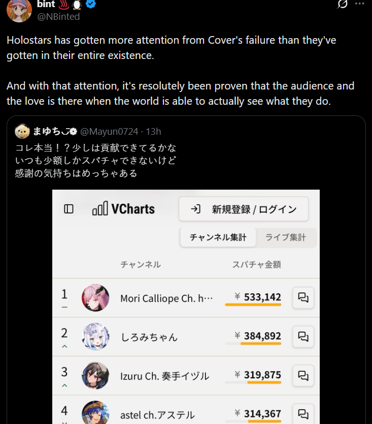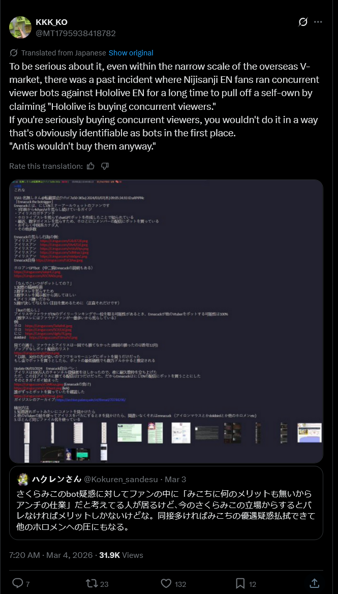 Are they actually botted tho? If it was the EN homos I would understand the sentiment but the JP homos are the ones with their career on the line so I understand if they have some drama tourists/graduation tourists
