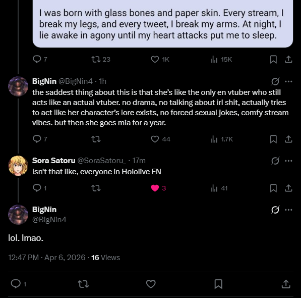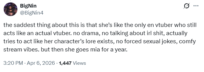 still funny how Ririka dropped her EN fans after she reached her subs goal