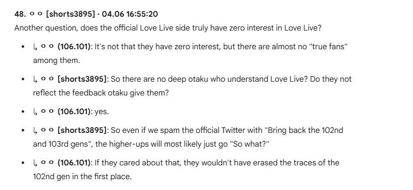 basically the only love live thing that worked the last two years was a combination gacha/vtuber/calander thing that had the brilliant idea of actually graduating school members as their characters completed school