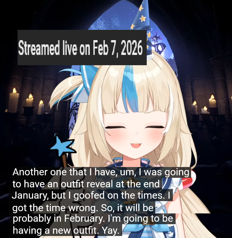 >>110884102all breaks over 30 days, MM/DD/YY>saba02/07/26 - ongoing (58d)11/09/25 - 01/13/26 (65d)>gura02/18/25 - 04/05/25 (75d)12/07/24 - 01/12/25 (36d)09/30/24 - 12/07/24 (68d) - ends with a single member stream, 104d combined07/14/24 - 08/16/24 (33d)04/23/24 - 05/26/24 (33d)02/18/24 - 04/14/24 (55d)09/14/23 - 11/28/23 (75d)12/08/22 - 02/12/23 (66d)