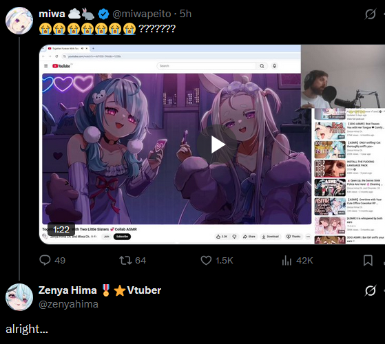 I'm here for the drama associated with EN VTubers grappling with the paradoxes of ASMR content creation