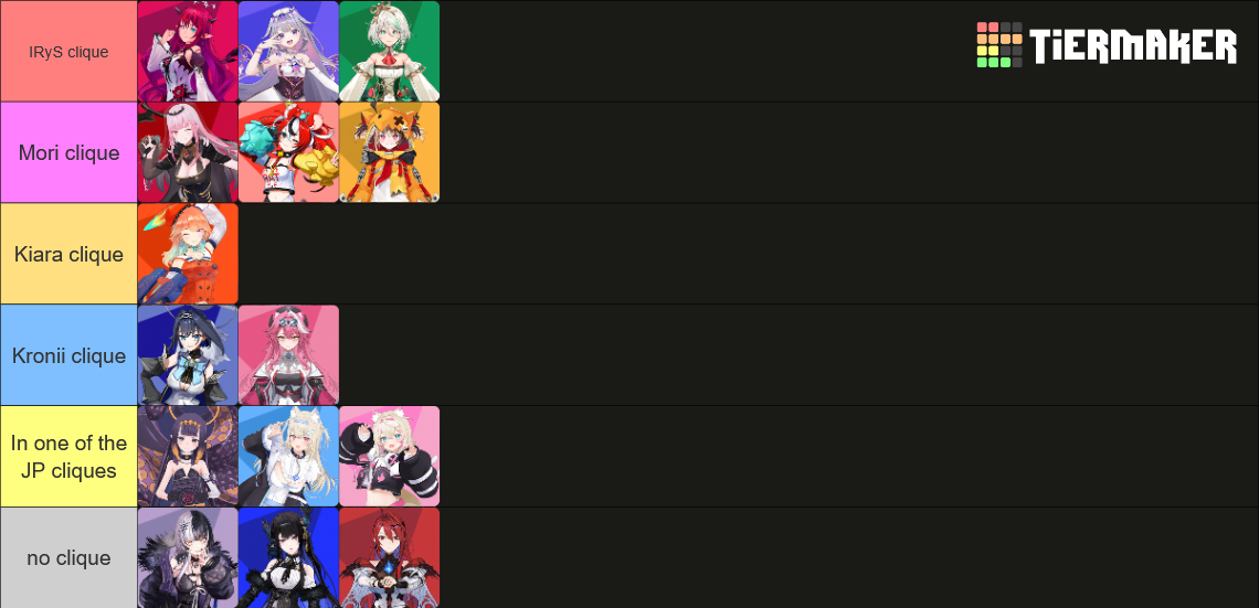 >>110887486you can just merge irys clique with mori and add raora, recent events should prove that kiara has no clique she has no real sway over the rest of the branch like mori does