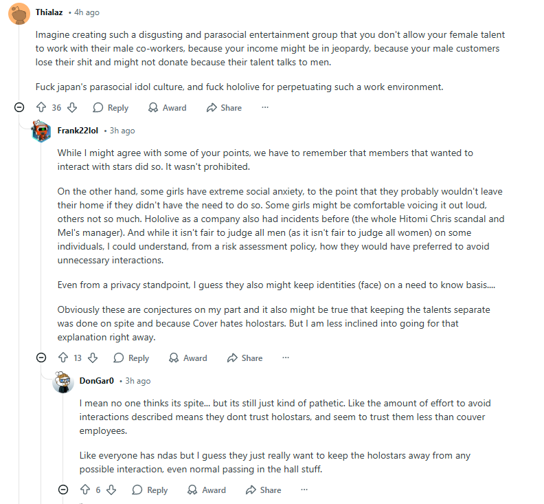 >>110887560A mixed holostars gen would be bizarre and tragic (they were never going to do a mixed hololive gen in any universe).Imagine being a holostars girl, or a "weird third co-ed branch not hololive or holostars" girl. Never really being a real holo put probably desperately wanting to. Getting collabs with Holos that your male genmates can't get, which causes immense sister hatred at you. But never getting invited to holofes. Being forced to do co-ed gen unity stuff until one day they crash the fuck out and scream cry in members about how they wish they were just a normal hololive girl. it would have been sufferingkino