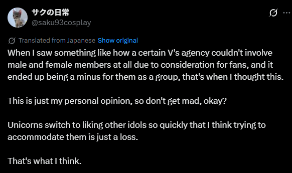 >>110889388No, just checked the image. He wrote "holostars and cover". I'm sensing a homobeggar or shitposter translated that.