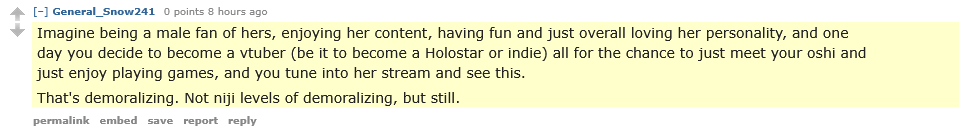 >>110887750>To summarise: it is a well-known fact that those people who most want to be male vtubers are, ipso facto, those least suited to do it. >To summarise the summary: anyone who would apply to be a holostar should on no account be allowed to do the job.