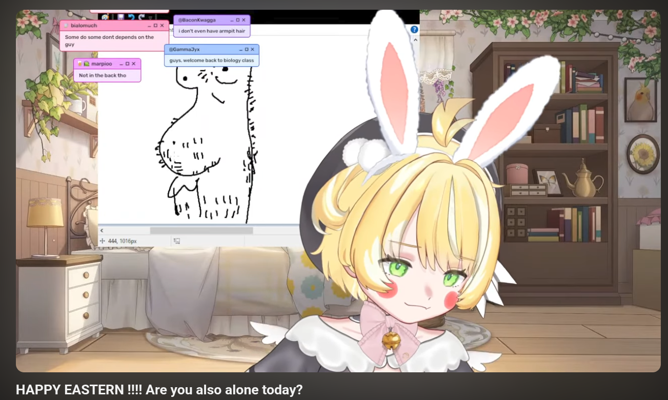 >watching Inis' Easter VODShe's drawing me wtfI don't like this bros. It's like she is stalking me