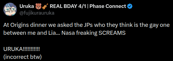 ▼ Phase Connect LinksOfficial Website: https://phase-connect.comOfficial Schedule: https://schedule.phase-connect.comOfficial Twitter: https://x.com/PhaseConnect | https://x.com/PhaseConnectJPOfficial Character References: https://rentry.org/pcgreferencesOfficial Twitch Archive Channels: https://rentry.org/pcgtwitcharchiveUnofficial Phase Connect Archives: https://rentry.org/pcgunofficialarchive––––––––––––––––––––––––––––––––––◆【Lia】https://x.com/rinkouashelia | https://youtube.com/RinkouAshelia | https://twitch.tv/asheliarinkou◆【Utatane Nasa】転寝ナサ (JP) https://x.com/UtataneNasa | https://youtube.com/UtataneNasa | https://twitch.tv/utatanenasa◆【Hakushika Iori】白鹿いおり (JP + EN) https://x.com/hakushikaiori | https://youtube.com/HakushikaIori | https://twitch.tv/iorihakushika◆【Fujikura Uruka】https://x.com/fujikurauruka | https://youtube.com/FujikuraUruka | https://twitch.tv/fujikurauruka◆【Shisui Michiru】紫翠みちる (JP) https://x.com/shisuimichiru | https://youtube.com/ShisuiMichiru | https://twitch.tv/michiru_shisui◆【Tenma Maemi】https://x.com/tenmamaemi | https://youtube.com/TenmaMaemi | https://twitch.tv/tenma◆【Pipkin Pippa】https://x.com/pipkinpippa | https://youtube.com/PipkinPippa | https://twitch.tv/pippa––––––––––––––––––––––––––––––––––◆【Kaneko Lumi】https://x.com/kaneko_lumi | https://youtube.com/KanekoLumi | https://twitch.tv/kanekolumi◆【Fuura Yuri】[Terminated] https://x.com/AmarisYuri | Archive: https://youtube.com/@TheNationalFuuraYuriArchive◆【Dizzy Dokuro】https://x.com/dizzydokuro | https://youtube.com/@dizzydokuro | https://twitch.tv/dizzydokuro◆【Jelly Hoshiumi】https://x.com/jellyhoshiumi | https://youtube.com/@jellyhoshiumi | https://twitch.tv/jellyhoshiumi◆【Ember Amane】https://x.com/emberamane | https://youtube.com/@EmberAmane | https://twitch.tv/emberamane◆【Clio Aite】https://x.com/ClioAite | https://youtube.com/@ClioAite | https://twitch.tv/clioaite◆【MariMari_en】https://x.com/MARIMARI_EN | https://youtube.com/@MARIMARI_EN | https://twitch.tv/marimari_en◆【Eepy Sleepy】https://x.com/EepySleepyCh | https://youtube.com/@EepySleepyCh | https://twitch.tv/EepySleepy––––––––––––––––––––––––––––––––––◆【Remilia Nephys】https://x.com/Remilia_Nephys | https://youtube.com/RemiliaNephys | https://twitch.tv/remilianephys◆【Chisaka Airi】https://x.com/ChisakaAiri | https://youtube.com/ChisakaAiri | https://twitch.tv/chisakaairi◆【Amanogawa Shiina】https://x.com/AmanogawaShiina | https://youtube.com/AmanogawaShiina | https://twitch.tv/amanogawashiina◆【Himemiya Rie】https://x.com/HimemiyaRie | https://youtube.com/HimemiyaRie | https://twitch.tv/himemiyarie◆【Erina Makina】https://x.com/ErinaMakina | https://youtube.com/ErinaMakina | https://twitch.tv/erinamakina◆【Komachi Panko】https://x.com/komachipanko | https://youtube.com/KomachiPanko | https://twitch.tv/komachipanko––––––––––––––––––––––––––––––––––◆【Runie Ruse】https://x.com/RunieRuse | https://youtube.com/@RunieRuse | https://twitch.tv/RunieRuse◆【Eimi Isami】https://x.com/eimiisami | https://youtube.com/@eimiisami | https://twitch.tv/eimiisami◆【Muu Muyu】https://x.com/Muu_Muyu | https://youtube.com/@MuuMuyu | https://twitch.tv/MuuMuyu◆【Hikanari Hina】https://x.com/HikanariHina | https://youtube.com/@HikanariHina | https://twitch.tv/HikanariHina◆【Saya Sairroxs】[Phase Citizen] https://x.com/sayasairroxs | https://youtube.com/@sayasairroxs | https://twitch.tv/sayasairroxs––––––––––––––––––––––––––––––––––◆【Kannagi Loki】巫ロキ (JP) https://x.com/kannagiloki | https://youtube.com/@kannagiloki◆【Kokoromo Memory】[Phase Citizen] https://x.com/kokoromomemory | https://youtube.com/@kokoromomemory_ | https://twitch.tv/kokoromomemory◆【Gram Pico】倉夢ぴこ (JP) https://x.com/grampico_ | https://youtube.com/@grampico | https://twitch.tv/grampico◆【Ayase Yuu】絢世ユウ (JP) https://x.com/ayaseyuuu | https://youtube.com/@ayaseyuu | https://twitch.tv/ayaseyuu_◆【Kaminari Clara】[Graduated] https://x.com/kaminariclara_ | https://youtube.com/@kaminariclara | https://twitch.tv/kaminariclara––––––––––––––––––––––––––––––––––◆【Malice Evermore】https://x.com/MaliceEvermore | https://youtube.com/@maliceevermore | https://twitch.tv/maliceevermore◆【Nitya Nil】https://x.com/Nitya_Nil | https://youtube.com/@Nitya_Nil | https://twitch.tv/nitya_nil◆【Wilhelmina Frost】https://x.com/wilhelminafr0st | https://youtube.com/@wilhelminafrost | https://twitch.tv/wilhelminafrost◆【Bibi Biscuit】https://x.com/BibiBiscuitCh | https://youtube.com/@bibibiscuitch | https://twitch.tv/bibibiscuitch◆【Anya Nyabyss】https://x.com/AnyaNyabyss | https://youtube.com/@AnyaNyabyss | https://twitch.tv/anyanyabyss◆【Sinon Sinfonia】https://x.com/SinonSinfonia | https://youtube.com/@SinonSinfonia | https://twitch.tv/sinonsinfoniaPrevious thread: >>110886660