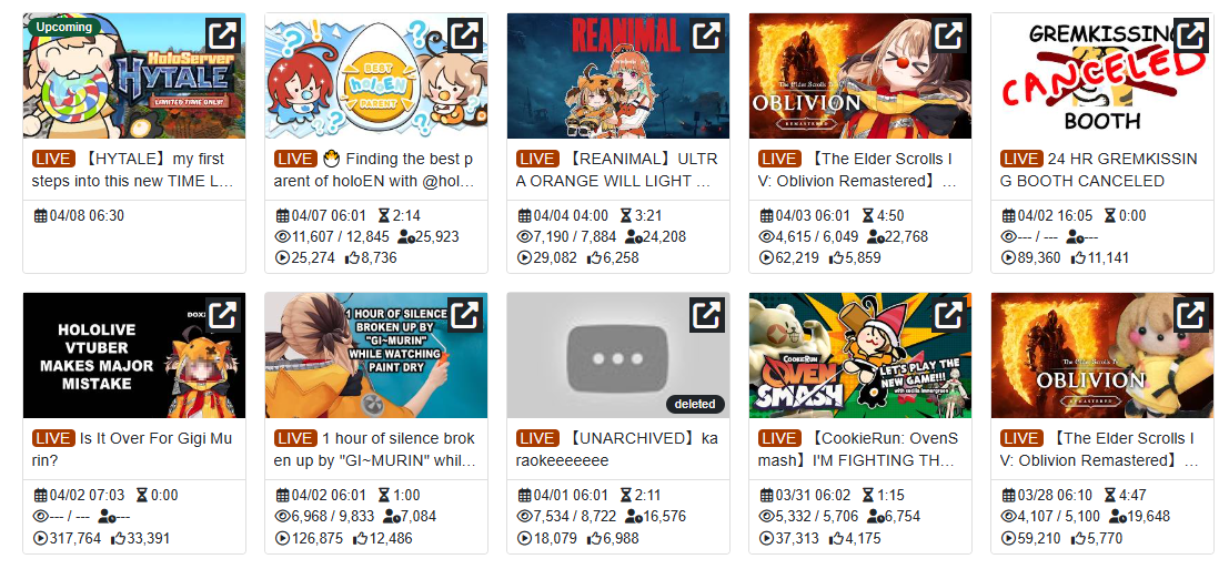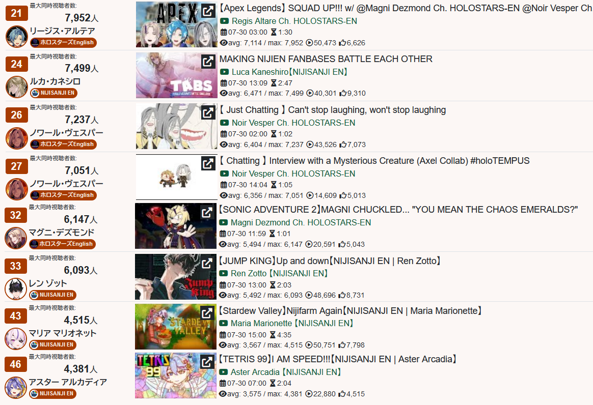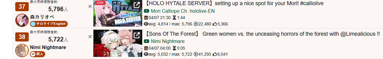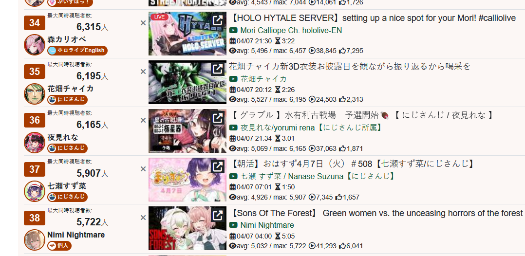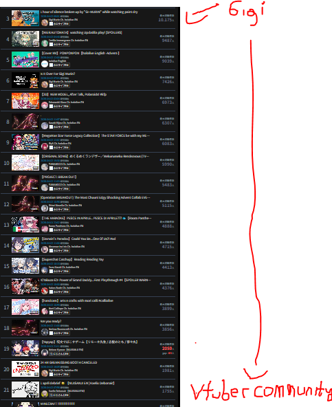 >>110895333*GENERAL NUMBERFAG SITES*>https://playboard.co/en/>http://ikioi-ranking.com/>https://vrabi.net/>https://www.vstats.jp>https://live-ranking.userlocal.jp/vtuber-ranking>https://vt.poi.cat/Hololive sites>https://www.hololyzer.net/youtube/index.html>https://trackholo.live/en/>https://holo-spotify-stats.jirikunes.eu/Twitch sites>https://sullygnome.com/>https://twitchtracker.com/>https://stats.roki.sh/>https://streamscharts.com/