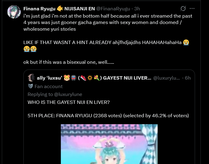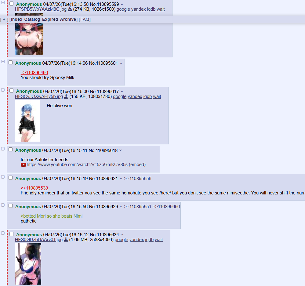 >>110895797It's odd how you're supposedly a Hololive fan and are always upset, in every thread you're in.