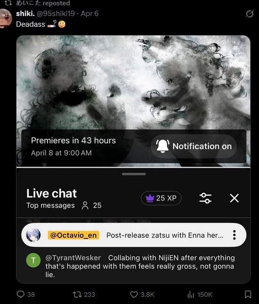 >>110899167I guess it really was ERB who caused Mori's sponsored collab cover to get delayed.