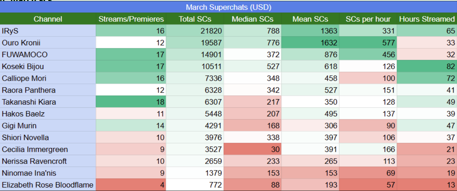 >>110900462>and the SALT collabs were the most successful HoloPro collabs in the EN branch.I don’t know what exactly is your definition of “success” but Kronii went from the top SC draw of her gen and up there with Mori as the top of her branch to the absolute bottom of her gen trailing even Bae. It seems like this “success” was similar to manjisanji 2020 and 2021 “success”>sink the girls to prop the boys upexcept neither dumb or dumber got any meaningful incline and were sinking as hard as the rest of the branch and, IIRC, their last collabs weren’t even beating 10k anymore. I say firing them and then firing the people who hired them was the best thing that happened to the branch ever, bar none