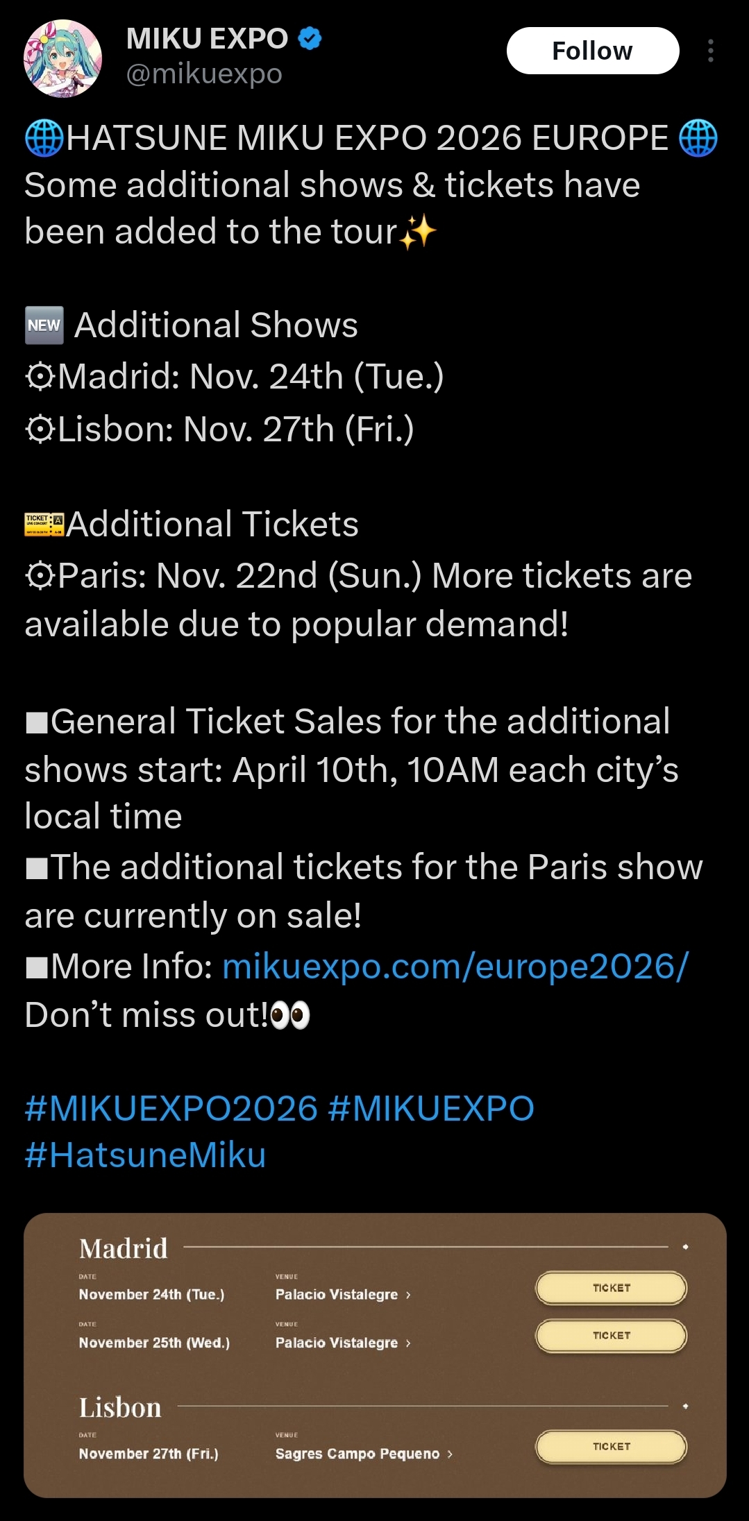 If they're doing Miku concerts at fucking bullfighting rings in Portugal what's stopping Cover from doing a World Tour stop or two in like Paris or some German hovel or whatever