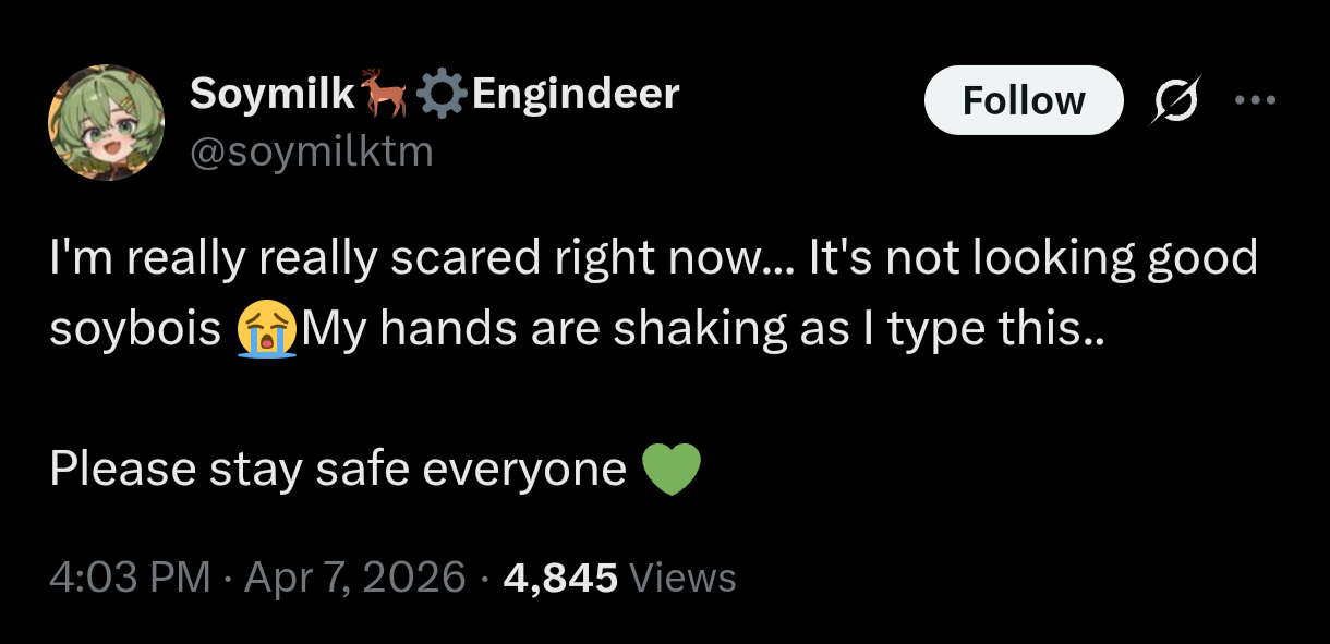 >>110900703nuclear armageddon in 2 hours or so i think