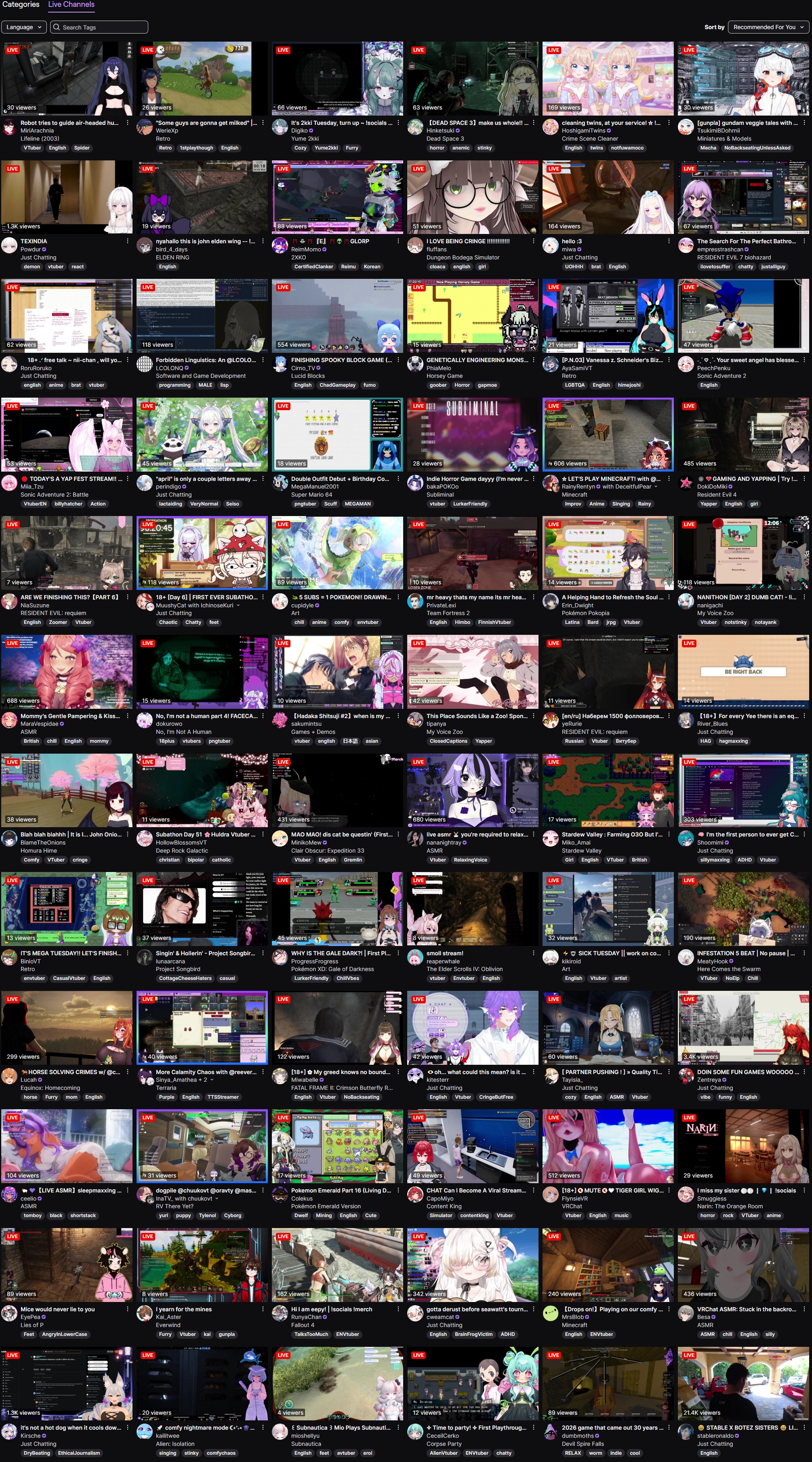 >>110899012I had to drop her more than a year ago because I got a job and couldn't watch streams that late anymore. According to the liggie she doesn't enjoy streaming these days. So I want to remember her as my kindhearted ojousama.