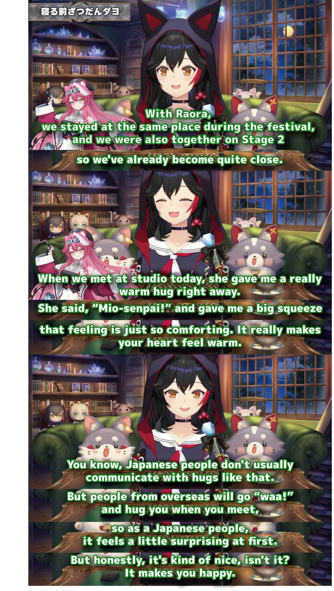 >>110925057It was my fault because I leaked the transcript of the No Homo Zatsu /here/, the entire narrative came from /here/, from /#/.At the time it seemed like a good idea because the wave of homobegging after Shiori's brick was insane and the No Homo Zatsu helped in calming it. But later what happened was that people started to quote it without having watched the stream and it turned into a game of Broken Telephone that ended with>NERISSA SAID THAT SHE HATED ALL MALES AND WOULD NEVER COLLAB WITH ANY MALEMyron quoted the No Homo Zatsu but did it so badly that any attempt at argument was dead from the start.
