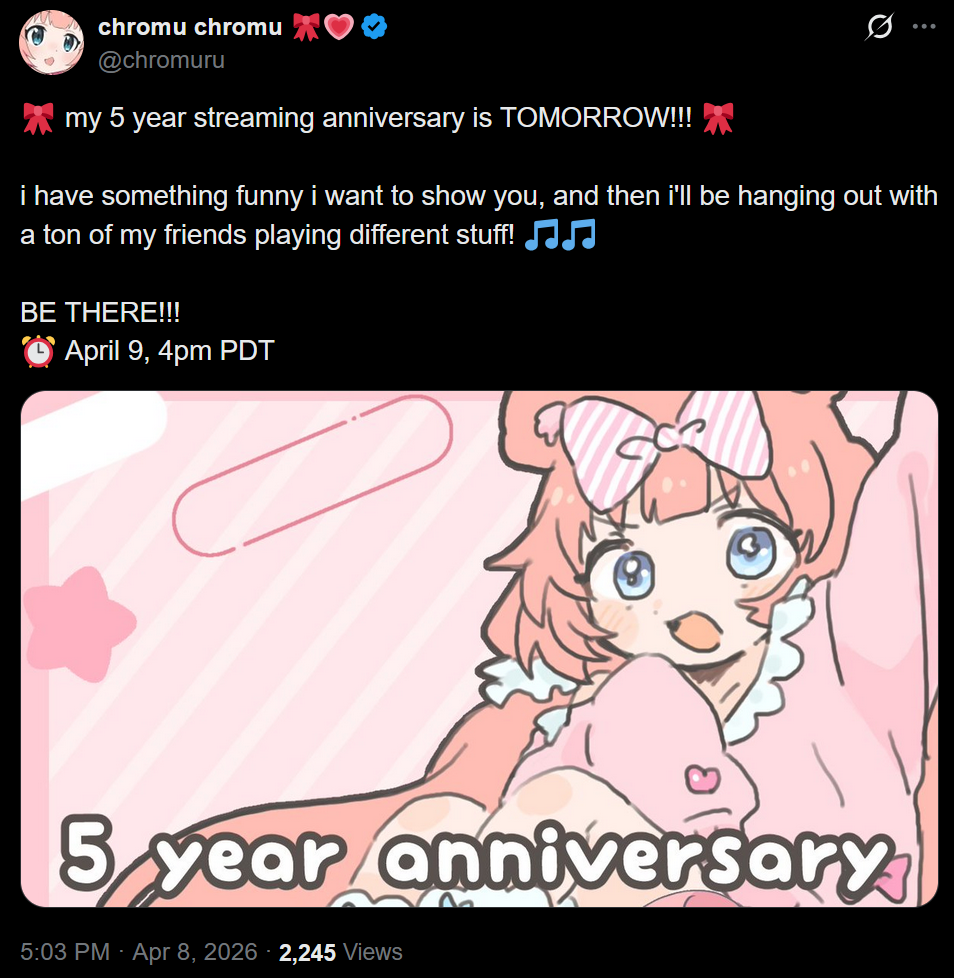 >>110933961Doesn't look like it, the stream title hasn't been updated and no one's in the prechat