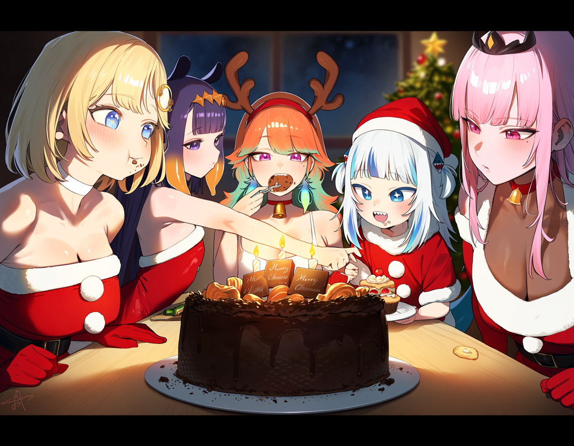 >>110939379clever plan but just don't let her get the impression she's the consolation prize>>110939619How many rolls did it take to get these where all the characters came out properly? Anima's great and all but even then I've been finding once you put this much stuff in one image the success rate starts dropping a lot. I wonder how useful "in varying positions", never considered it before but seems like a nice way to spread them around the image in a natural sort of way without having to specify every little thing. I'm still never quite sure how much to specify and how much to leave unsaid.>>110939484I love when these extremely bizarre requests from forever ago show up again and I can get confused over them a second time.