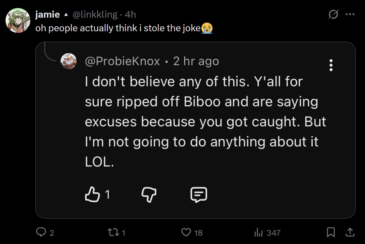 lol I found that tweet that copied biboofucker got almost 200K likes stealing a meme