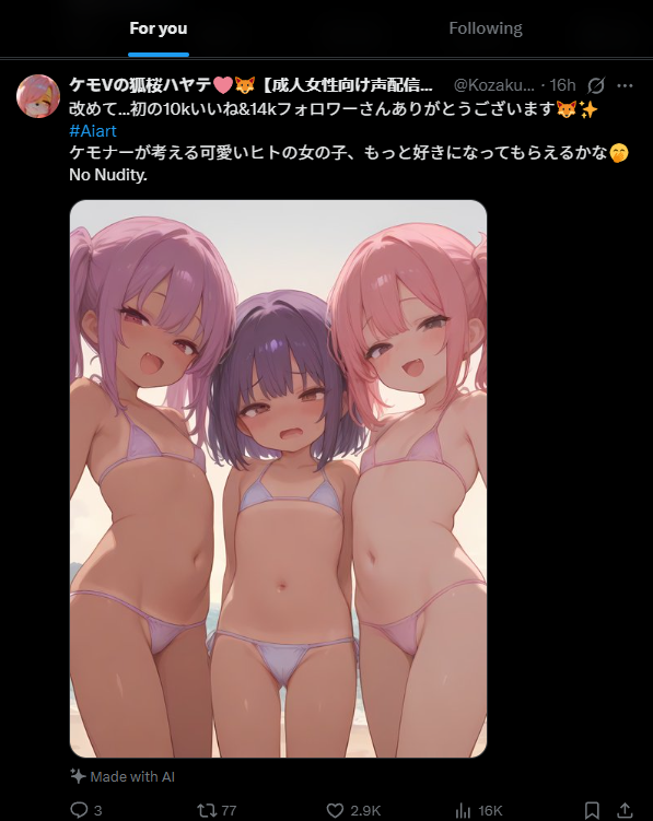 The only thing I see on my For You page is cosplay and AI generated loli art.