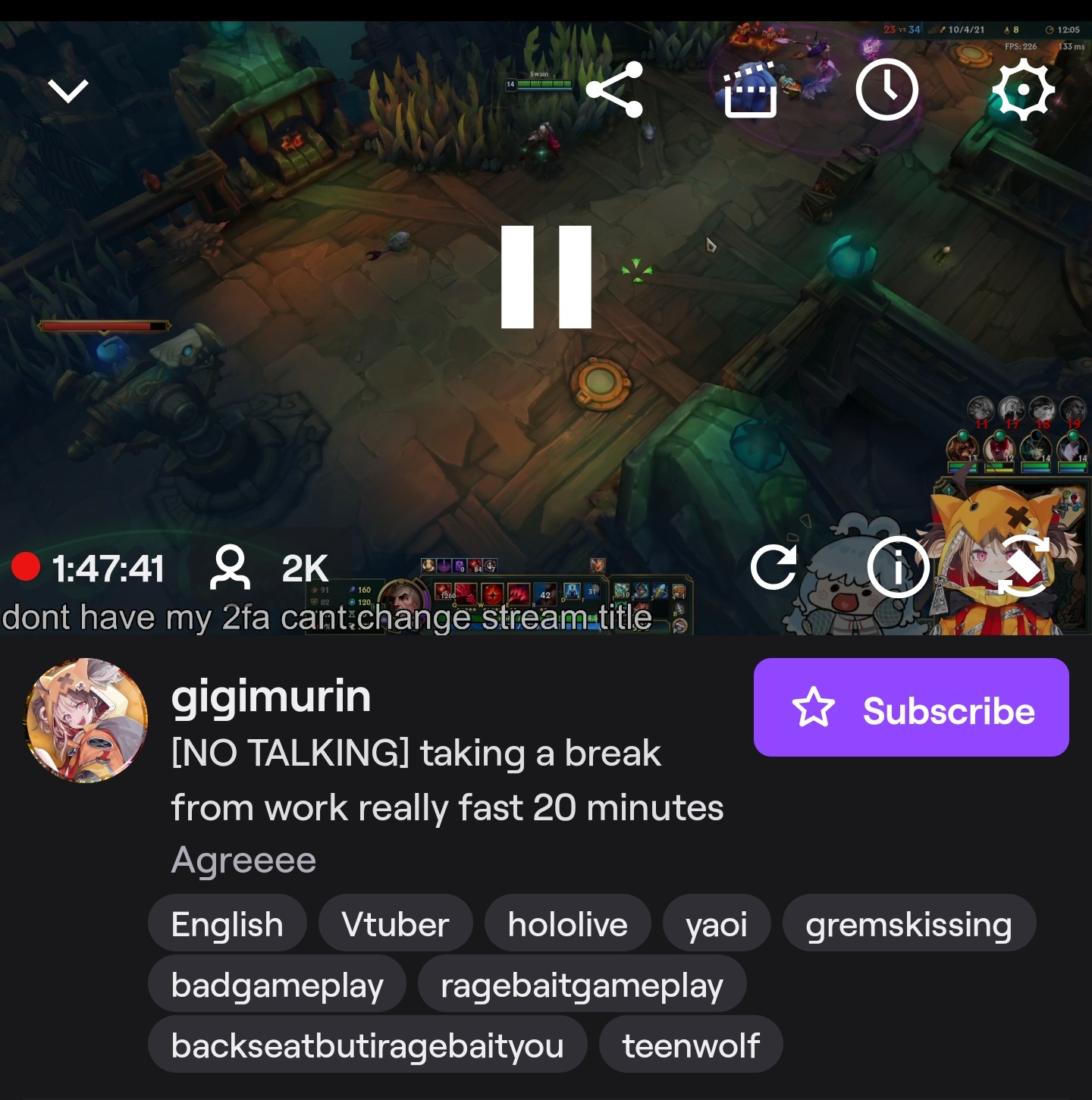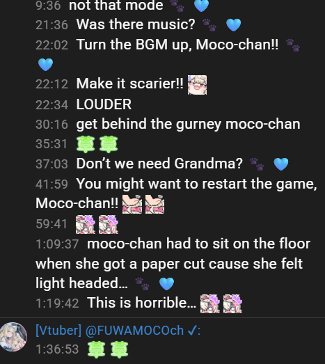 Second before what would likely be a spooky flashback, Mococo kills the stream.