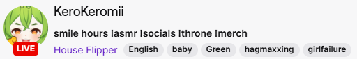 >>110961939Maybe link the thing? post a picture?https://www.twitch.tv/kerokeromii