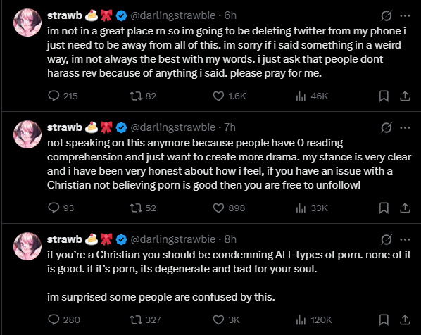 >>110966047no seriously though, what am I missing here? she can't be getting so much hate for saying "porn is a sin in christianity", that's not even an opinion it's a fact looks like most of the seethe is from trannies too so porn being a sin shouldn't bother them??