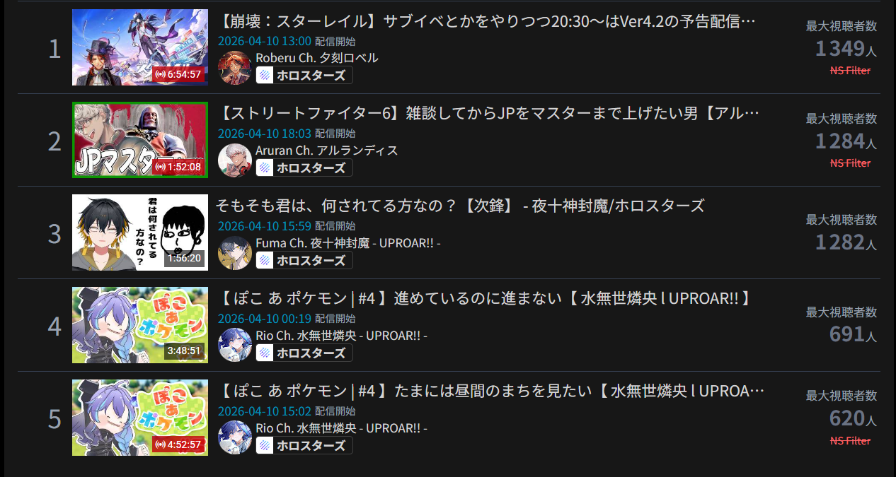 *GENERAL NUMBERFAG SITES*>https://playboard.co/en/>http://ikioi-ranking.com/>https://vrabi.net/>https://www.vstats.jp>https://live-ranking.userlocal.jp/vtuber-ranking>https://vt.poi.cat/Hololive sites>https://www.hololyzer.net/youtube/index.html>https://trackholo.live/en/>https://holo-spotify-stats.jirikunes.eu/Twitch sites>https://sullygnome.com/>https://twitchtracker.com/>https://stats.roki.sh/>https://streamscharts.com/