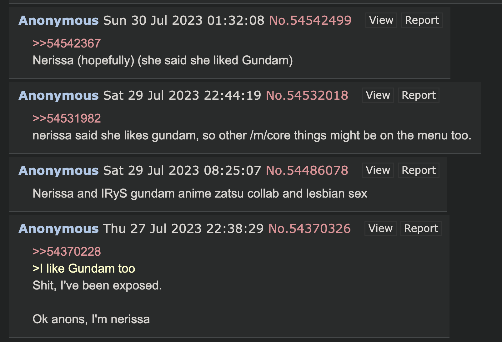 >>110973477>"Nerissa is a fake fan">"no she isn't!!?">"the best girls hate the homos and she supports them LOL" >"AAAAIIIEEEEEE...!!! That image isn't yours! TELL DOWN YOUR POST!!" Buckbroken