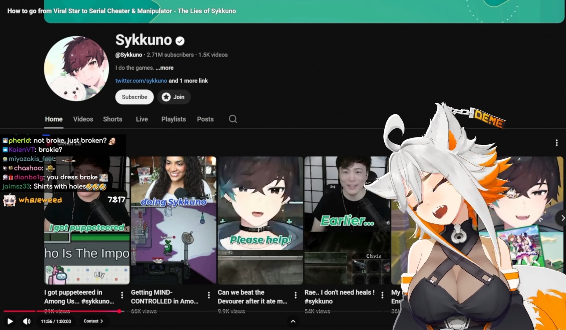 >>110977226>>110977256The part where he showered them with gifts and money and promises of a future together in order get them to have sex with him when he had no intention of following up on anything because he was already in an IRL relationship. He admits that much himselfhttps://www.youtube.com/watch?v=PrtZjnUxKZ0>>110977347What was stopping Sykkuno from saying "sorry I have a girlfriend"? He's 34 years old