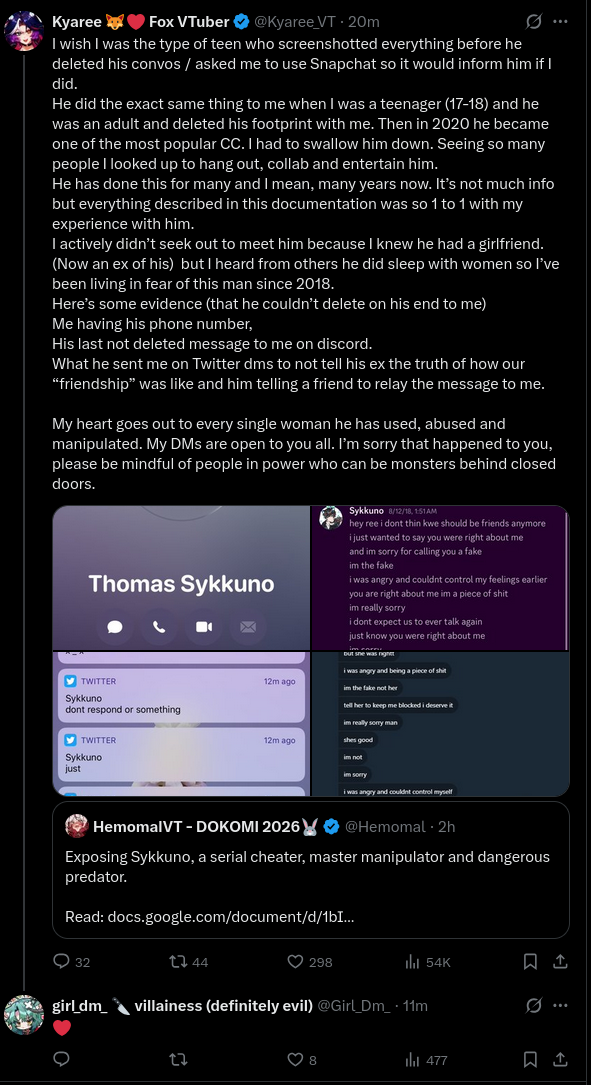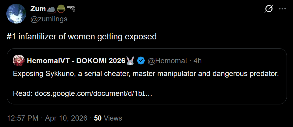 It’d be kind of funny if this whole doc situation did fuck all for sykkuno but it causes people to question why one of bao’s mods was involved in a group conversation about relationships inadvertently