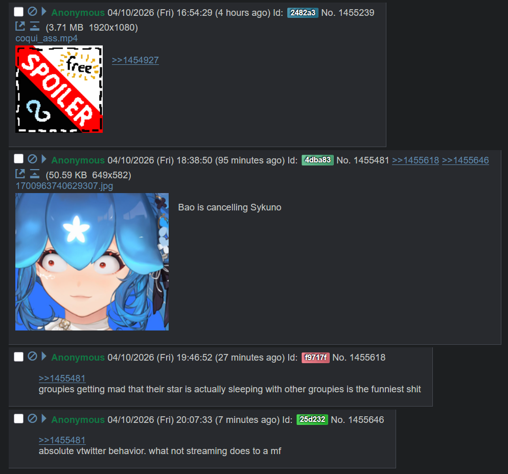 >>110973821everyone is going to tell you stuff about "it's her boyfriend" and that may be true but there's another aspect of this a lot of people don't realise: most groups of vtubers have a guy who mods for one/several of them that's the hatchet man for the group, a guy who is good at finding dirt on other people and when shit like this happens is usually the person who gets everything in order for the girls. regardless of what his status to bao is, the mod in question was likely the dude with all the info and fed it to the group.