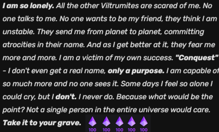 Time to watch DM play 7.3 and get made at the story, the only joy is someone feeling even an ounce of my pain...