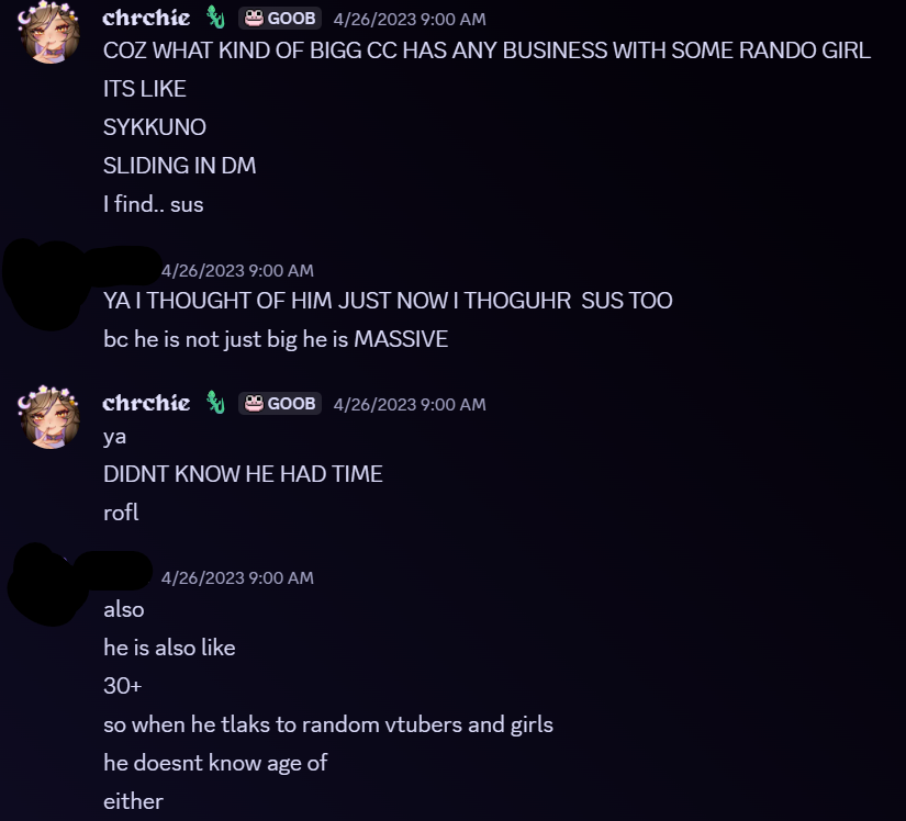 If you showed someone these ss and vaguely explained the situation they would think they got vedal, if these type of things are enough to get a big male creator fucked vedal isn't as safe as we thought