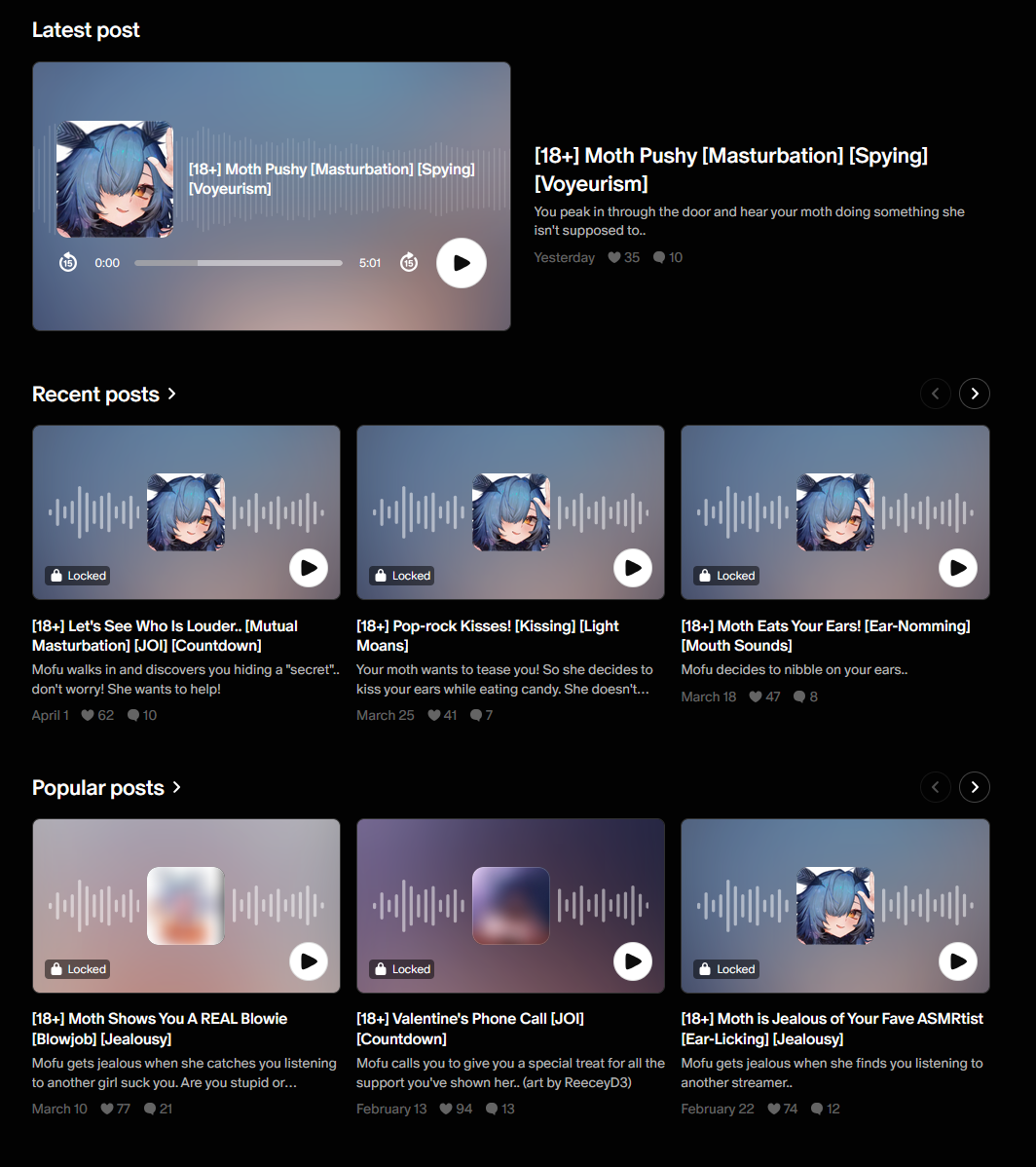 This thread is for the discussion and discovery of English-speaking VTubers who do ASMR.