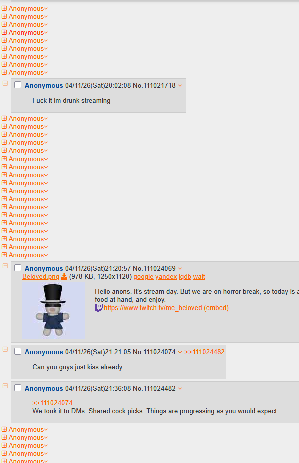 >>111004529Mneh, not clear enough. If you want people who will keep pushing until you say it outloud around you it can be good, but if you want to avoid in its entirety having to deal with this kind its necessary to put the foot down with firmness, same reason why the mention of boundaries before was there. If you don't speak about what you want and not you cannot truly blame so much the community that forms after that, people will try to see if you are just talking about others to "make them envious", or ignore it and assume you still provide the dose of GFE while having a partner because if it truly mattered or bothered you you would have said so.Something about a lot of vtuber viewers and vtubers themselves being socially inept and not being capable of getting that sometimes you want certain things even if you don't expressly say so.You can approach it from a more "subtle" way by adding it onto your rules on twitch, or the about section, not directly mentioning it because you don't want to "ostracize" your viewers, but have it explicitly stated to keep things clear and, once again, avoid the situations that arise from tiptoeing the line of not talking about it.There is a rampant love for a narrative where no viewer ever exists for females who turn down GFE specifically in this site, but it's not really that bad as long as you are entertaining, so to speak you just enter the more leveled playing field.