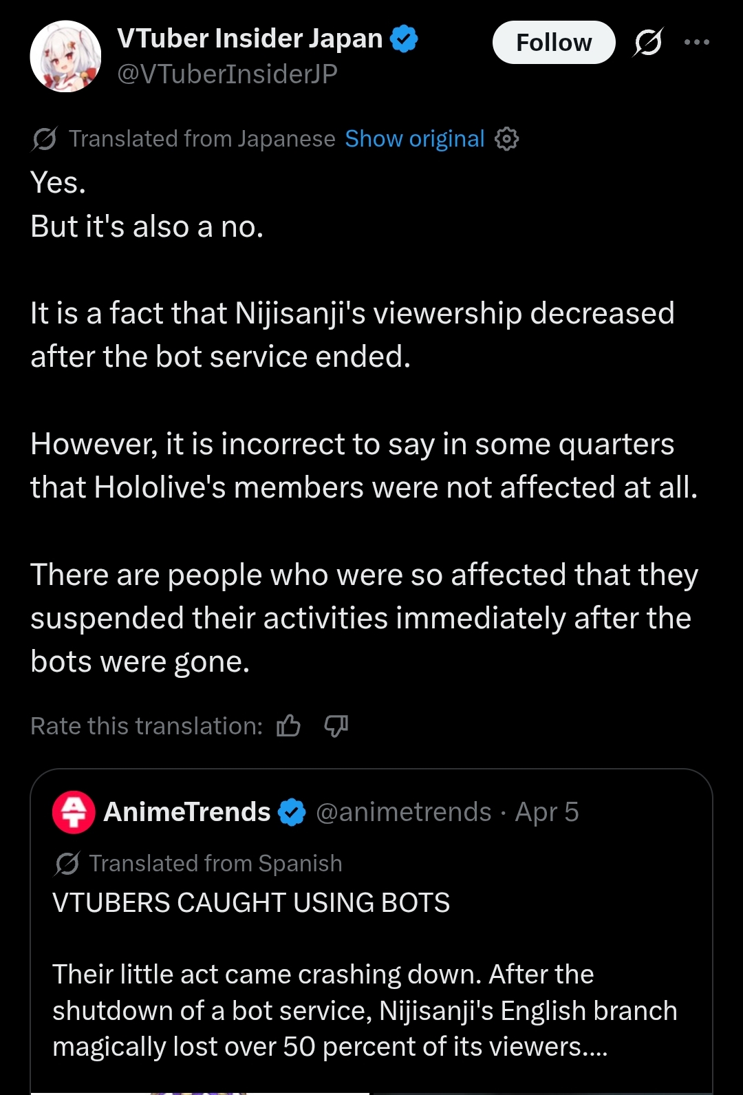 someone has any idea of what are the real numbers of nijisanji? kanae right now is streaming to 27k people and the chat is almost dead and full of gray account.