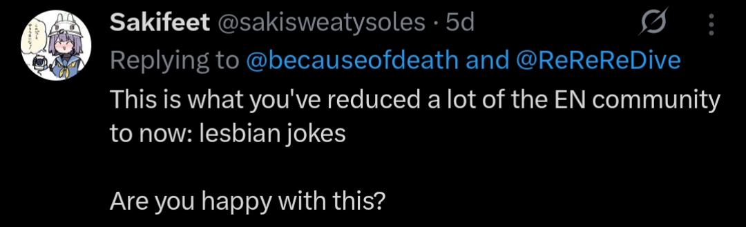 >>111006860Her members' homobegging was annoying her during membershipShe won't