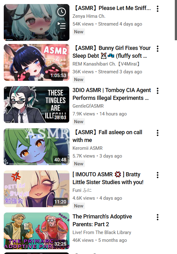 >>111004228>nbut not for asmr ?https://youtube.com/playlist?list=PLGVSmPsDsxCay7pTdnsTaxALlaBKHoq5k