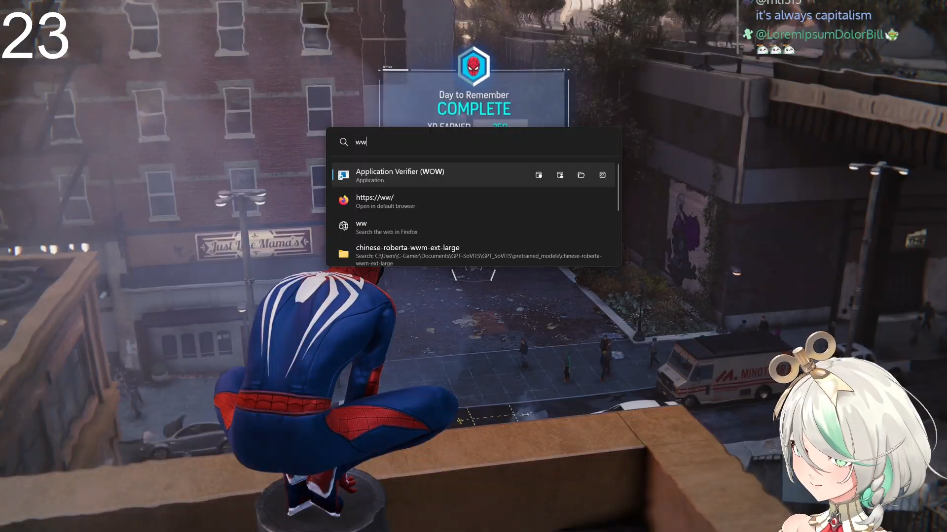 Oh God... She forgot that the random NPCs say Spiderman every time you get close to them kek>>111012174It's probably because you shouldn't encourage people to drink and making a TTS like that would just force you to drink if you're playing the game with her>>111012223A sip any time someone says Spiderman ingame