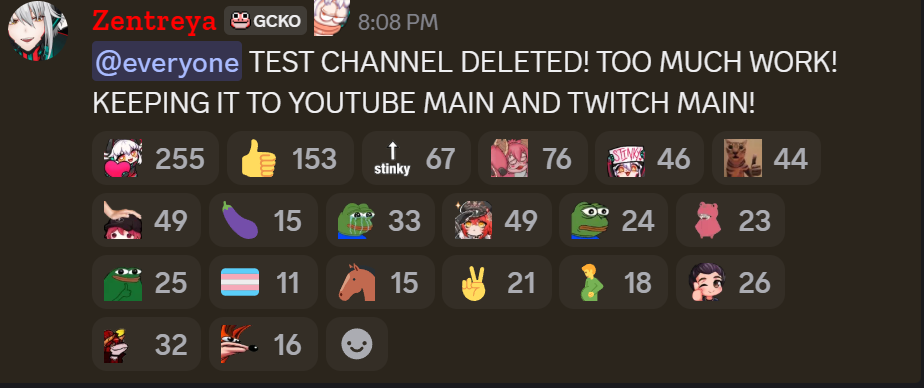 >>111029053I guess it's not that much work considering it's just a screenshot of herself and some text. But really if we're talking alt channels I don't think Zen even needs one aside from maybe a 24/7 twitch channel. Now that would just be free money for her.