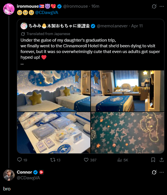 >>111035127Will Connor deflower Mouse in the Cinnamoroll hotel?