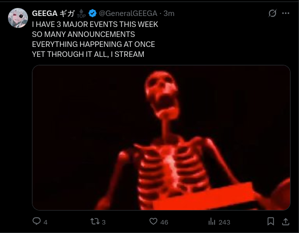 Geega is teasing something with NL tomorrow