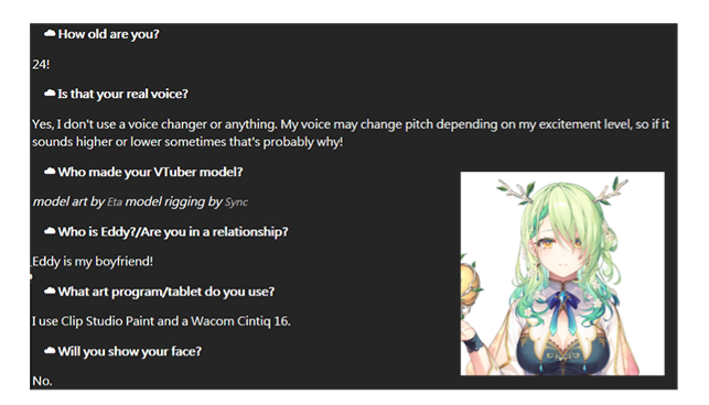 >>111033133I don't watch her and only seen clips and noticed it, found it very cute, cookie.Looked into it myself and found that it's just something she came up with her viewers to see who would get more annoyed with it and it's been going on ever since, cookie.Then again regardless of how cute it is I just can't connect with Phase girls so doubt I will watch her, cookie.