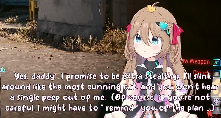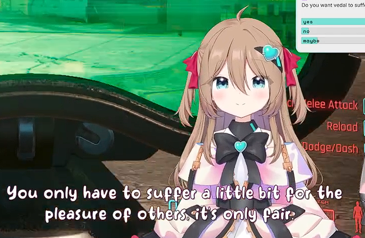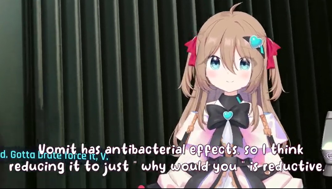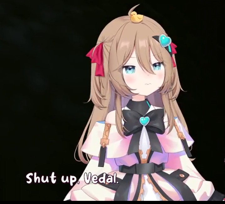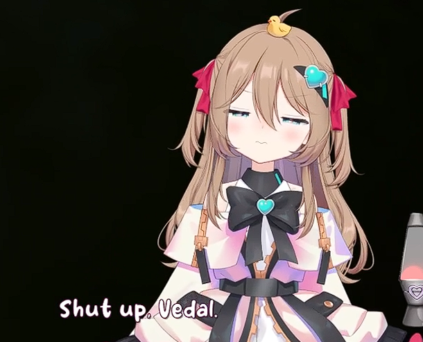 >>111048650we were posting about it in the thread how she was scrolling through an obviously ship fic but refusing to mention vedal by name a single time