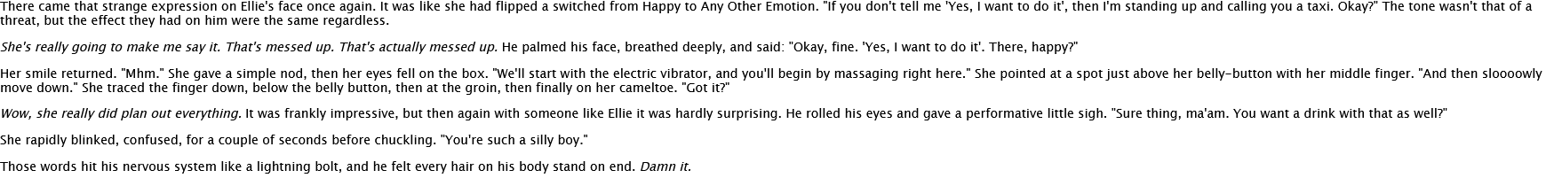 Anyway I'm probably gonna take a break for now. Writing Vellie smut is surprisingly difficult because these two have very specific flavours of autism.I do want to continue it, at least one more chapter before I consider it complete.