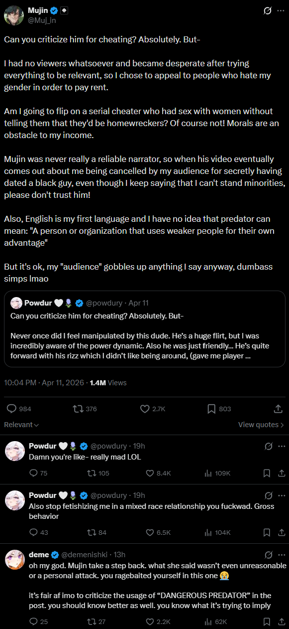 >>111048588Mujin confirmed for the Powdur anti that's been crashing out about her for months