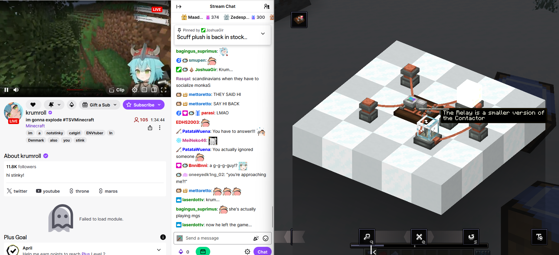 >>111048816krum and eating spaghetti with cream cheese and cheese while fucking around with electrical circuits in a mod in minecraft