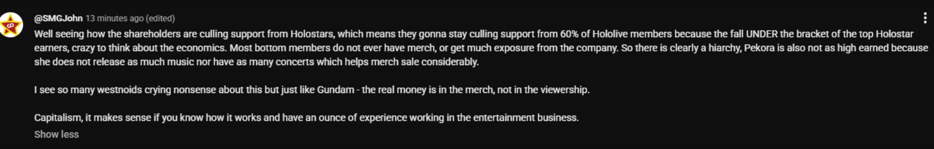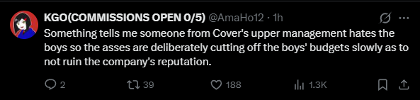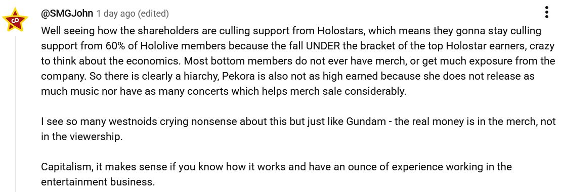 >>111056716yes, like all holos, the bad but understandable thing about Cover is that they treat everyone the same way, the only reason HomoJP end up like this is because they probably hit a threshold like their costs are like x3 of homos expected profits in 5 years or something like that
